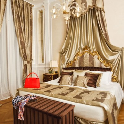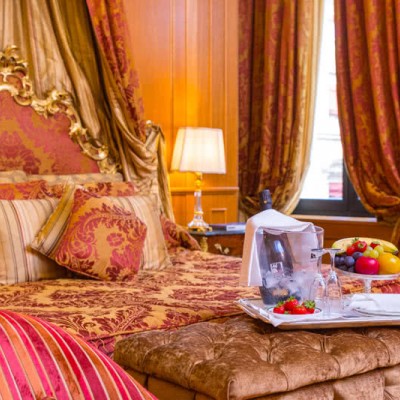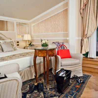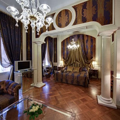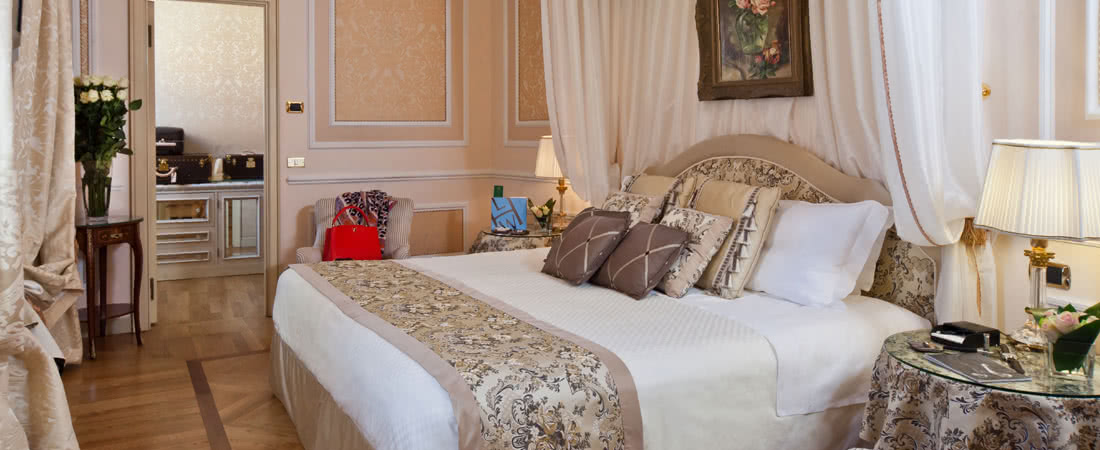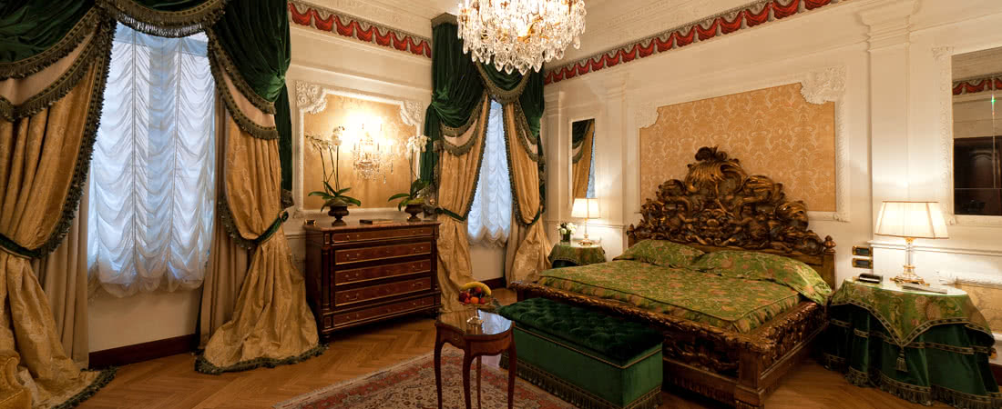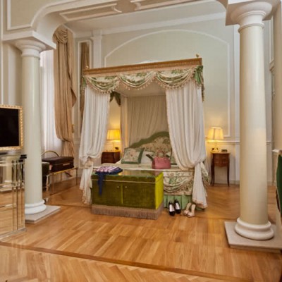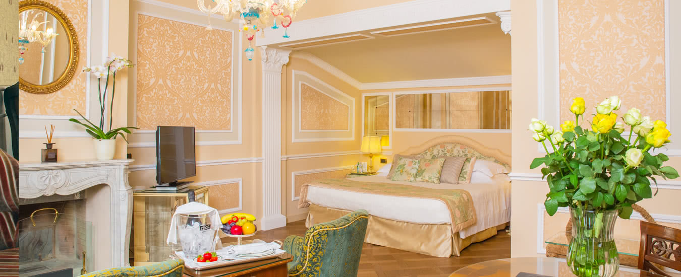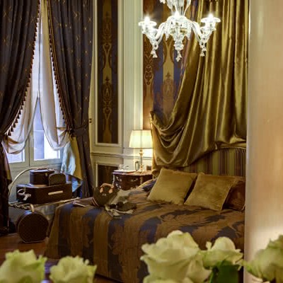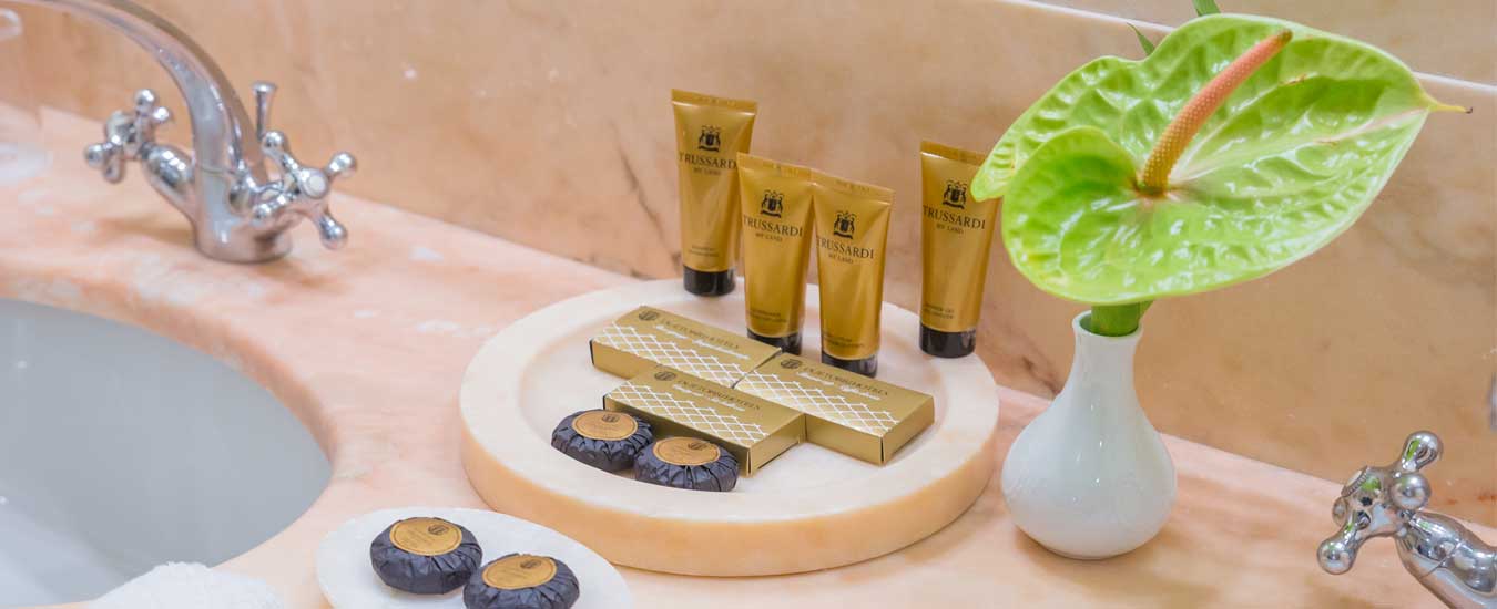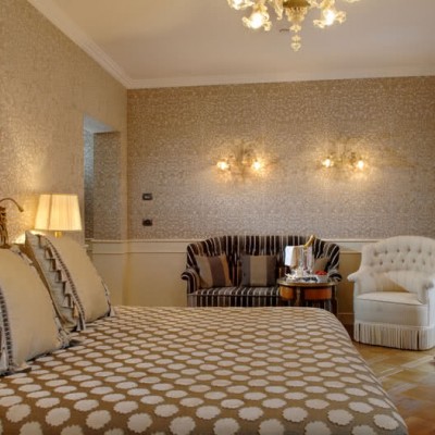 Meravigliosi drappeggi, sete e tessuti, dipinti del XVIII secolo, marmi finemente levigati e preziosi mosaici, si susseguono nelle spaziose stanze e nelle lunghe gallerie dell’Hotel. A disposizione dei nostri Ospiti lenzuola esclusivamente in lino o cotone: materiali naturali e anallergici, di grande comfort.