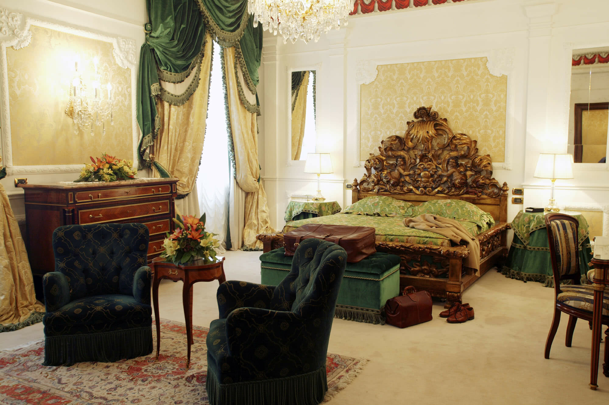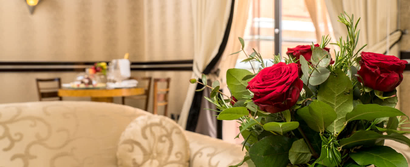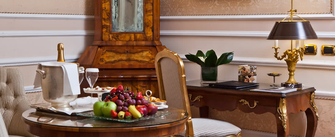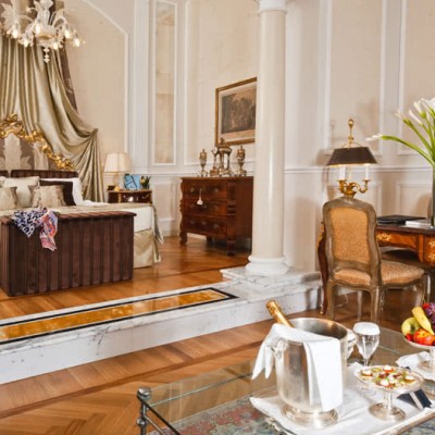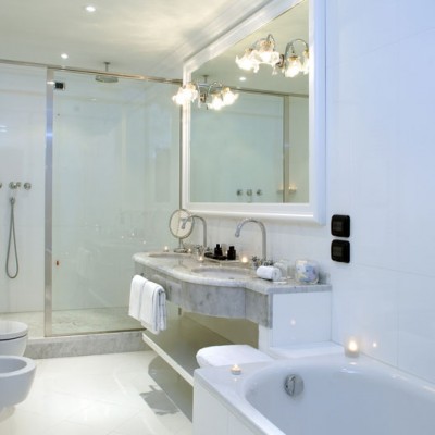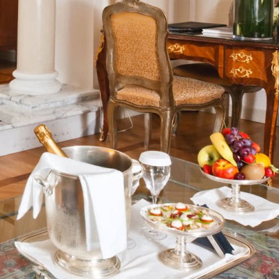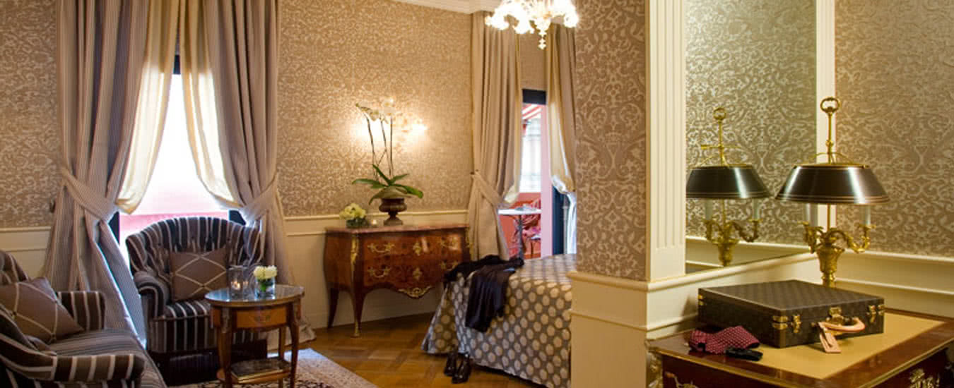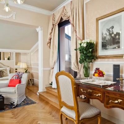 Meravigliosi drappeggi, sete e tessuti, dipinti del XVIII secolo, marmi finemente levigati e preziosi mosaici, si susseguono nelle spaziose stanze e nelle lunghe gallerie dell’Hotel. A disposizione dei nostri Ospiti lenzuola esclusivamente in lino o cotone: materiali naturali e anallergici, di grande comfort.