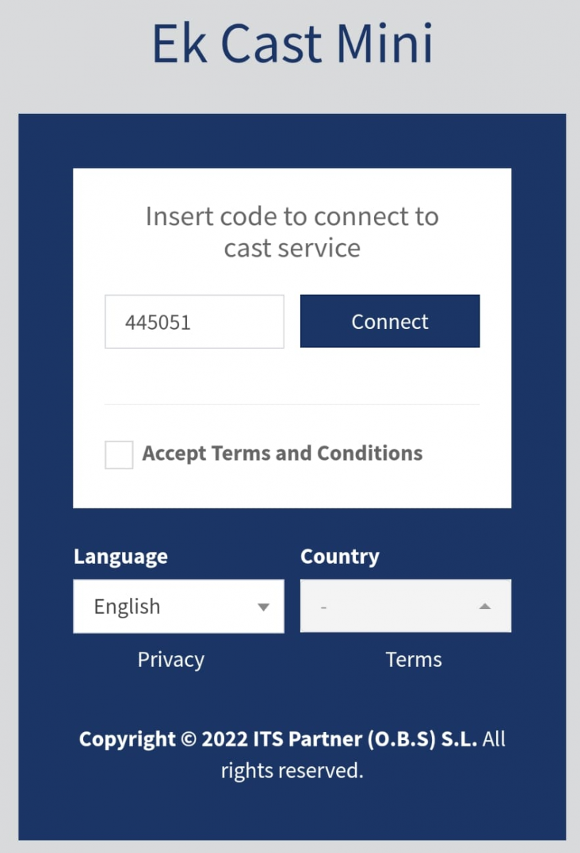On your device, the following screen will appear: flag "accept the terms and conditions" and then click on "Connect".